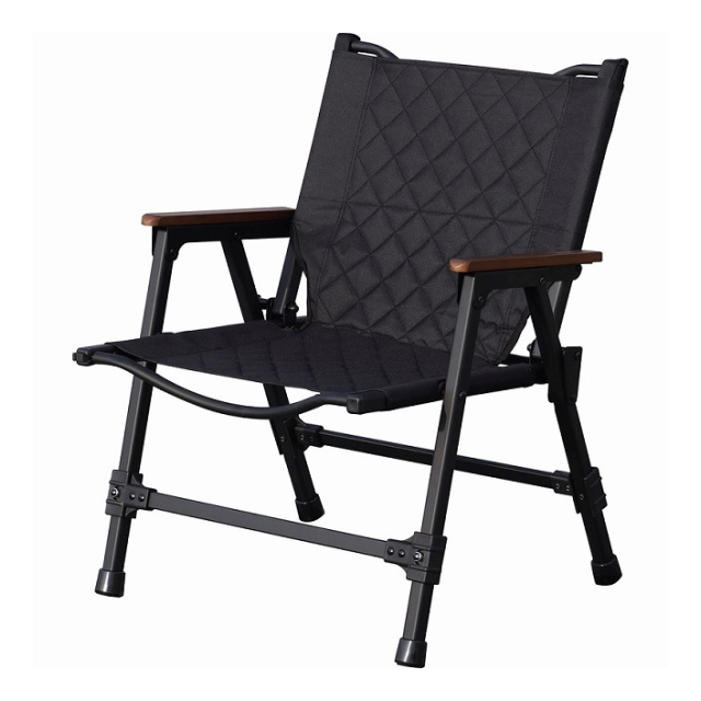 難燃生地を使用しており、焚き火など火の粉による穴が開きにくい折りたたみ式のチェア。パーツごとに分解できるのでコンパクトに収納可能。キルト加工生地&天然木のひじ掛けで高級感のある仕上がり。脚キャップが付いているので、フローリングを傷つけにくくアウトドアだけでなく室内での利用も可能です。・耐荷重/約90kg
