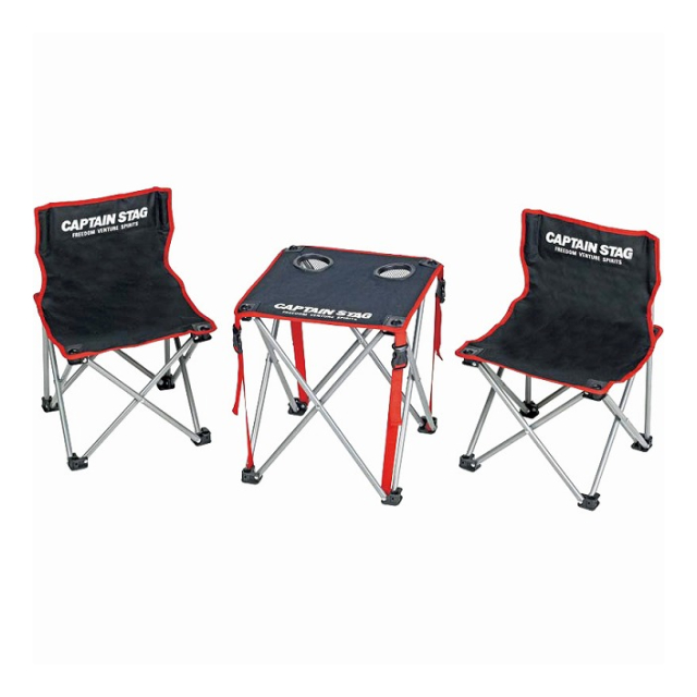 | 組立時(テーブル):365×365×380mm、(チェア):345×320×480mm×2、座面高さ:250mm、収納時:500×300×110mm、収納袋 |
