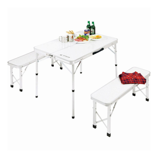 | 使用時/(テーブル):620×900×700・380mm、(ベンチ):240×860×高さ380mm×2、収納時:100×900×320mm |
