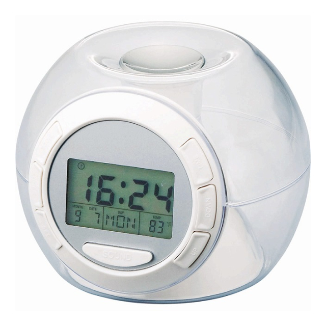 ランダムにライトが光るボール型のデジタルクロック。癒しを感じさせる自然の音を楽しめるサウンドメーカー機能も搭載した目と耳で感じる楽しいインテリアです。・カレンダー表示・温度表示・アラーム