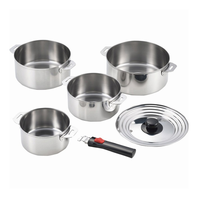 | 14cm鍋・16cm鍋・18cm鍋・20cm鍋×各1、兼用蓋・着脱ハンドル×各1 |