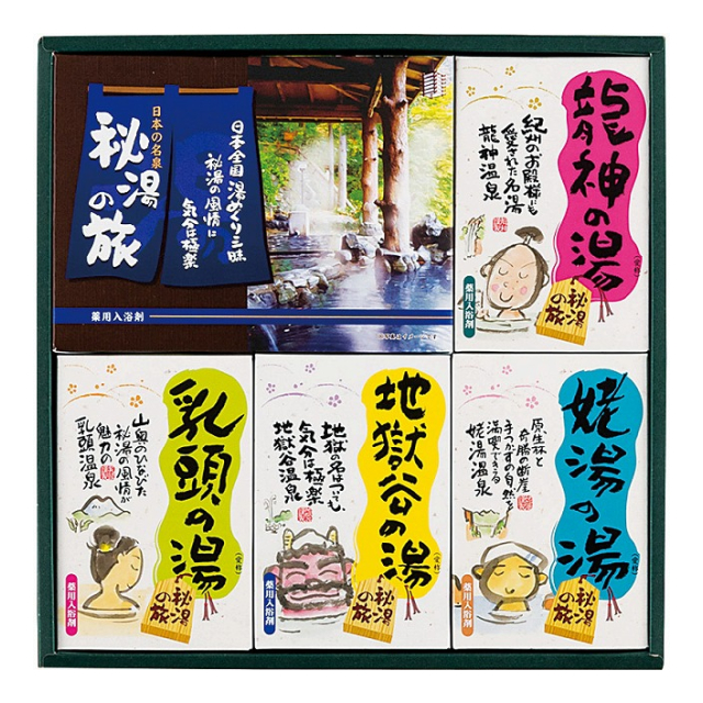 | 薬用入浴剤:25g×3包×4(乳頭の湯・地獄谷の湯・姥湯の湯・龍神の湯×各1)、薬用入浴剤(姥湯の湯):25g×4包×1 |