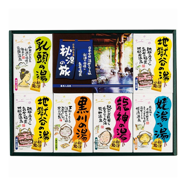 | 薬用入浴剤:25g×3包×6(乳頭の湯・黒川の湯・姥湯の湯・龍神の湯×各1、地獄谷の湯×2)、薬用入浴剤(姥湯の湯):25g×4包×1 |