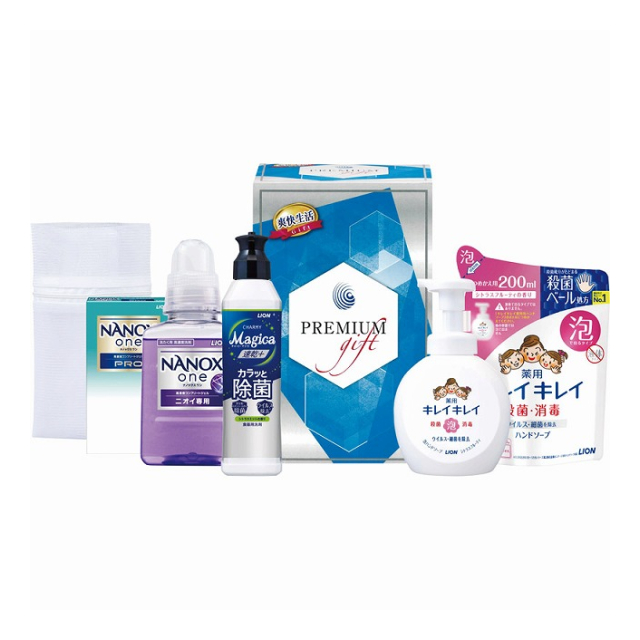 | ライオンキレイキレイ薬用泡ハンドソープ:250mL・詰替:200mL・ライオンナノックスワン ニオイ専用:380g・ライオンナノックスワンプロ2P・ライオンマジカ速乾プラスカラッと除菌:220mL・洗濯ネット×各1 |