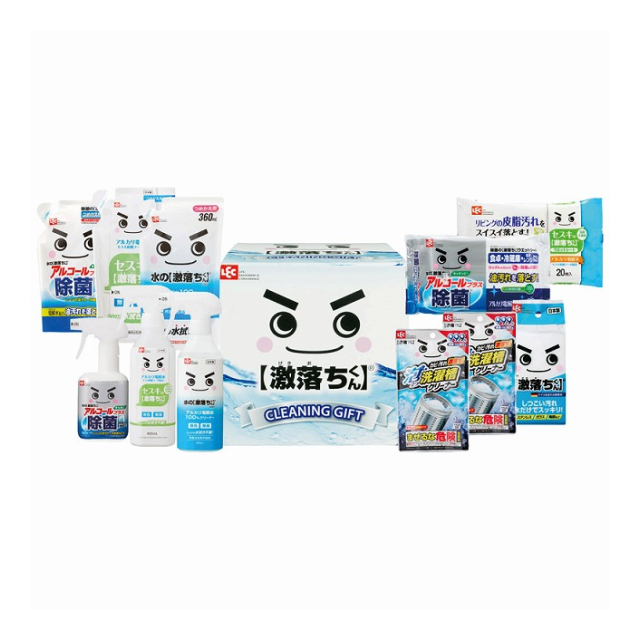 | 水の激落ちくん(アルカリ電解水):400mL・詰替:360mL・セスキの激落ちくん:400mL・詰替:360mL・除菌の激落ちくん:320mL・詰替:300mL・除菌の激落ちくんウエットシート:30枚・セスキの激落ちくんシートフローリング用:20枚入・激落ちくん(メラミンスポンジ)×各1、激落ちくん泡立つ洗濯槽クリーナー×2 |