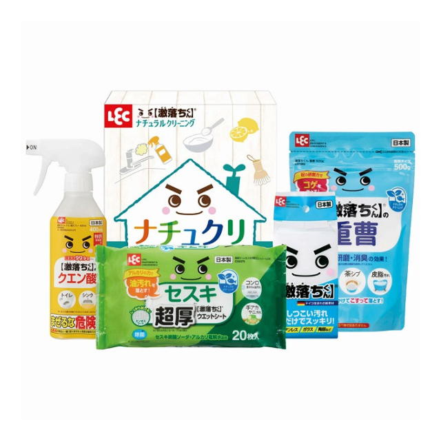 | 激落ちくんクエン酸スプレー:400mL・激落ちくん重曹:500g・激落ちくん(メラミンスポンジ)・激落ちくんセスキ超厚ウエットシート:20枚×各1 |