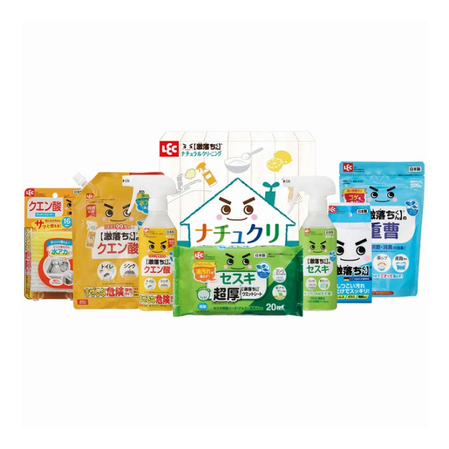 | 激落ちくんクエン酸スプレー:400mL・詰替:500mL・激落ちくんクエン酸キッチンクリーナー:16枚・激落ちくん重曹:500g・激落ちくんセスキスプレー:400mL・激落ちくん(メラミンスポンジ)・激落ちくんセスキ超厚ウエットシート:20枚×各1 |