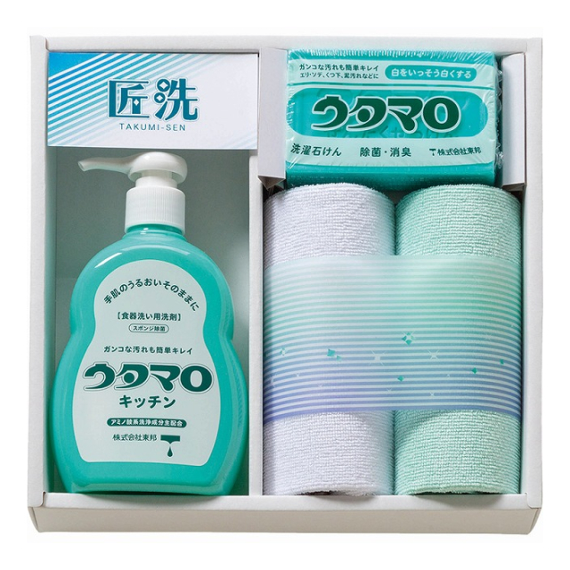 | ウタマロ洗濯石けん:133g・ウタマロキッチン:300mL×各1、マイクロファイバークロス×2 |