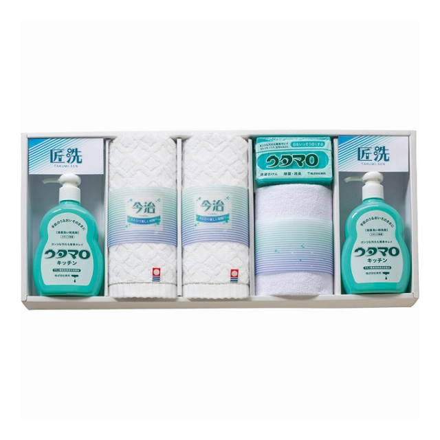 | ウタマロ洗濯石けん:133g×1、ウタマロキッチン:300mL・今治ウォッシュタオル×各2、マイクロファイバークロス×1 |