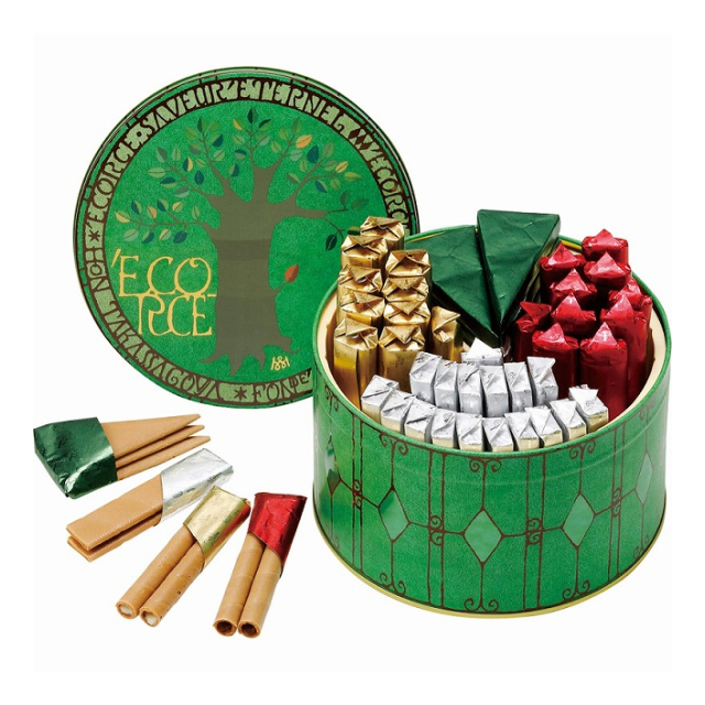 透けるほど薄く焼いた生地を、三角、短冊、丸型に巻き上げました。丸型はらせん状にふんわり生地を焼き、内側にミルクとホワイトのチョコレートを入れました。素材本来の旨みを引き出したサクッと軽い食感の焼菓子です。
