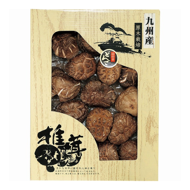 低カロリー、高タンパク質、食物繊維が多くビタミンDが豊富な九州産どんこ椎茸です。