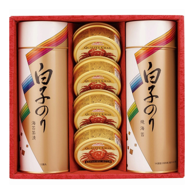 | のり茶漬け12袋×1、まるずわいがにほぐし肉55g×4、焼のり8切5枚14袋×1 |