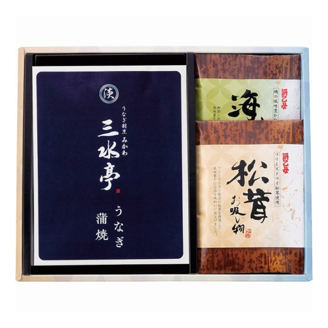 | 三水亭 三河一色産うなぎの蒲焼半身・浜乙女 松茸お吸物2袋・浜乙女 海苔お吸物2袋×各1 [品番: MU-CJC] [JAN: 4570000000000] | 1 | 3,000 円 | ログインすると表示 |