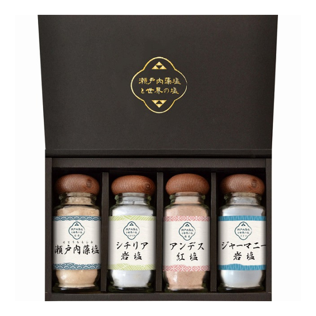 | シチリア岩塩・瀬戸内藻塩・アンデス紅塩・ジャーマニー岩塩各100g×各1 |