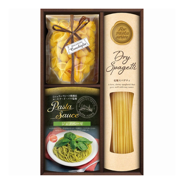 | スパゲティ130g・マカロニ(コンキリエ)70g・あえるパスタソース(ジェノベーゼ)100g×各1 [品番: APF-BJ] [JAN: 4580000000000] | 1 | 2,000 円 | ログインすると表示 |