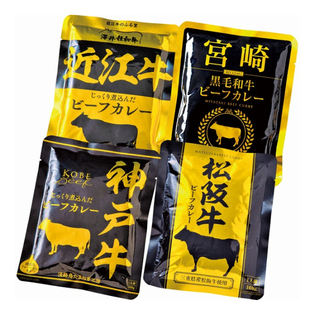 | 神戸牛カレー・松阪牛カレー・近江牛カレー・宮崎黒毛和牛ビーフカレー各160g×各1 |