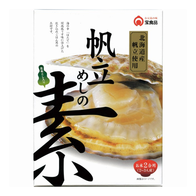 薄味ながら、しっかりとした旨みが自慢の釜めしの素です。北海道産帆立を使用。