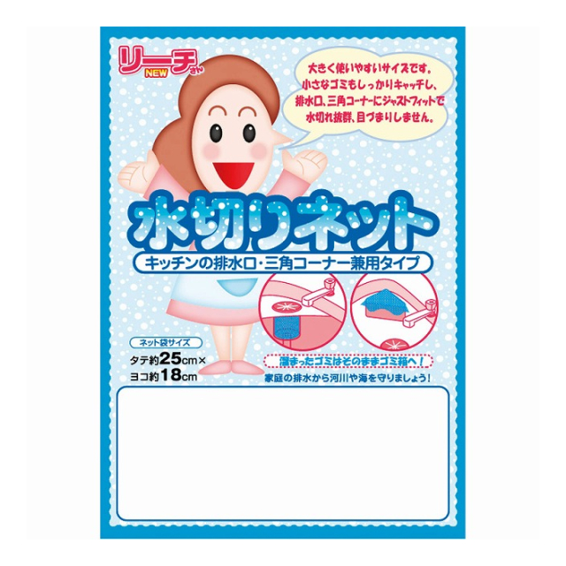 伸縮性のあるネット構造で取り付けが簡単。水切れが早く、容器内がサラサラで衛生的。三角コーナー・排水口共用。