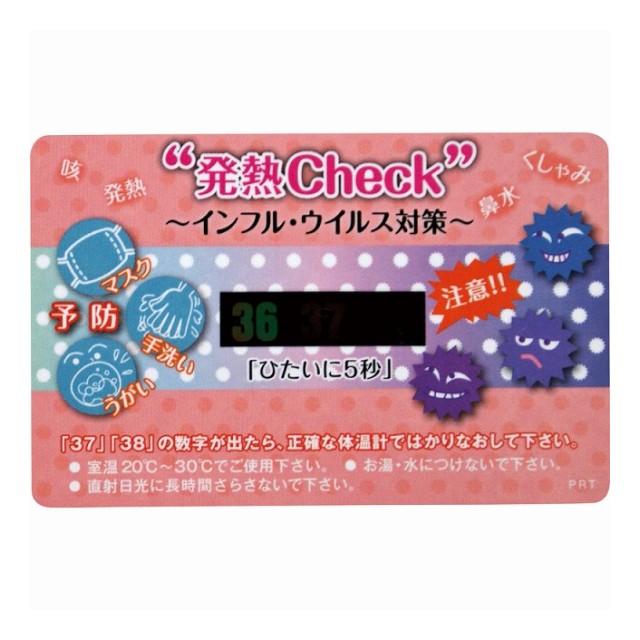 インフル・ウイルス対策には体調管理が一番の予防!ひたいに5秒あてるだけの簡易体温計付きカードです。