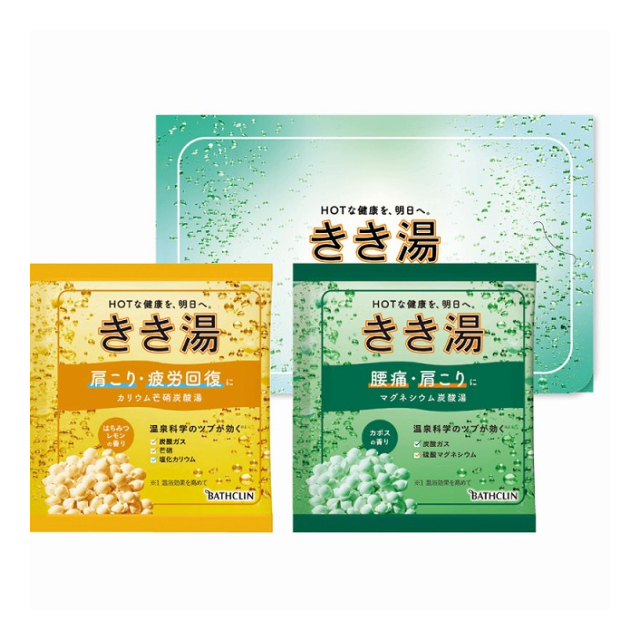 | 入浴剤:30g×2(マグネシウム炭酸湯・カリウム芒硝炭酸湯×各1) [品番: KKY-3D] [JAN: 4900000000000] | 1 | 300 円 | ログインすると表示 |