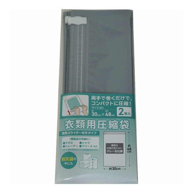 手押しでかさばる衣類を簡単に圧縮できます。旅行・出張時や非常時の為に防災バッグに入れても場所を取りません。スライダー付