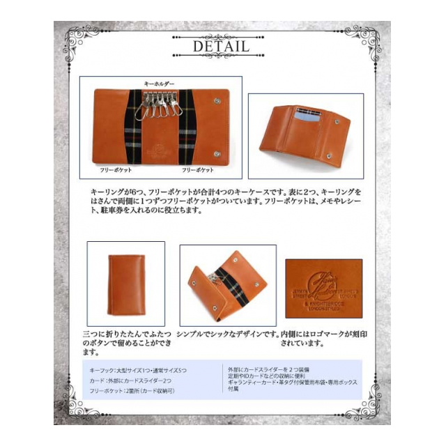 | ■素材→牛革(日本製ブライドルレザー)、布、PVC ■付属品→ギャランティカード、革タグ付き保管用布袋、専用保存箱 ■規格→カード入れX2(外に) ■ブランド名→HARVIE&HUDSON |