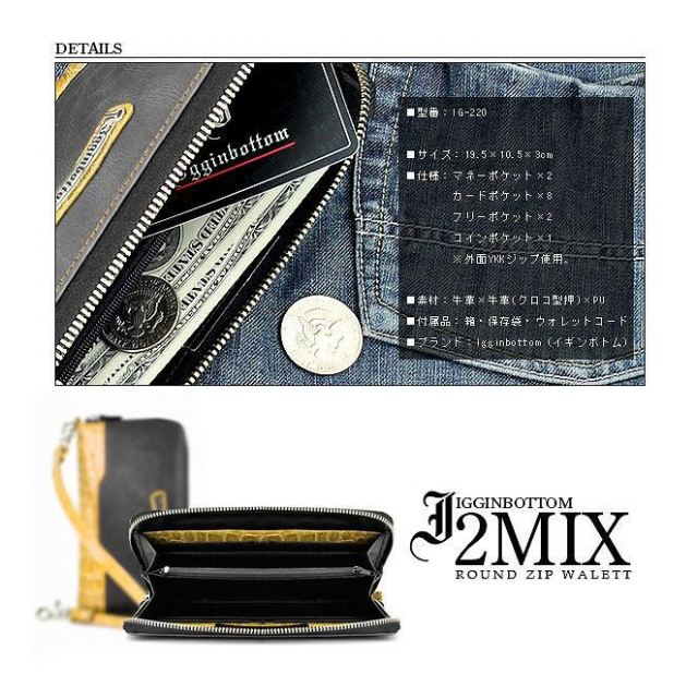 本革使用 ラウンドファスナー式 ラウンドジップ財布 ウォレットコード付き IG-220 メンズ財布