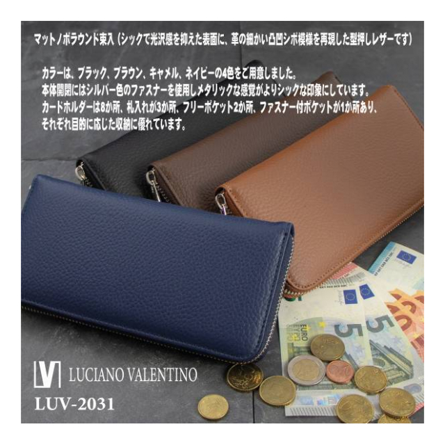 「バレンチノ」の名を継承するイタリアの上質なトータル・ファッション・ブランドとして名高いルチアーノバレンチノ【LUCIANO VALENTINO】から、ビジネスやカジュアルなどあらゆるオケイジョン、MDに対応できるデザイン性に優れたラウンド財布が登場しました。
