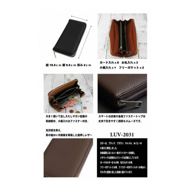 牛革マットノボ ラウンド長財布 長財布 ロングウォレット LUV-2031 メンズ財布