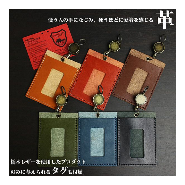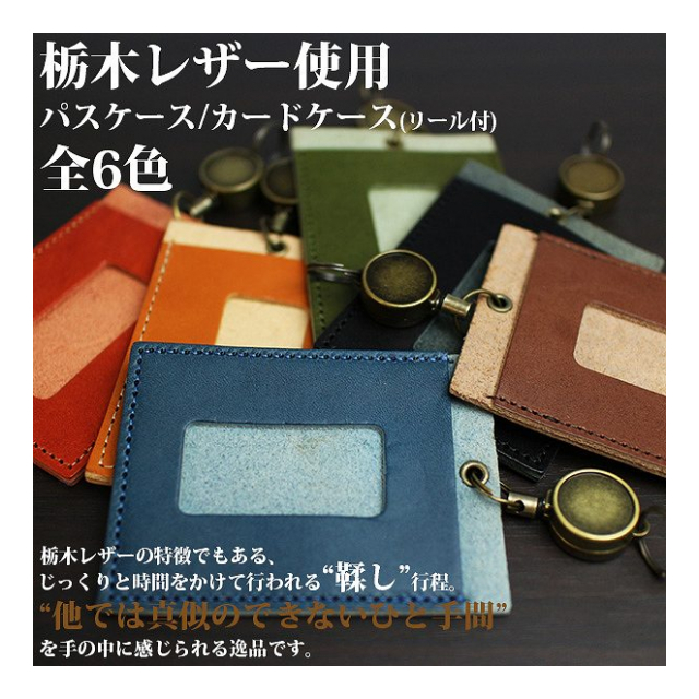 品質には絶対の自信を持つ、『ジーンズ(栃木レザー)』を使用したリール付きで便利なパスケースです。