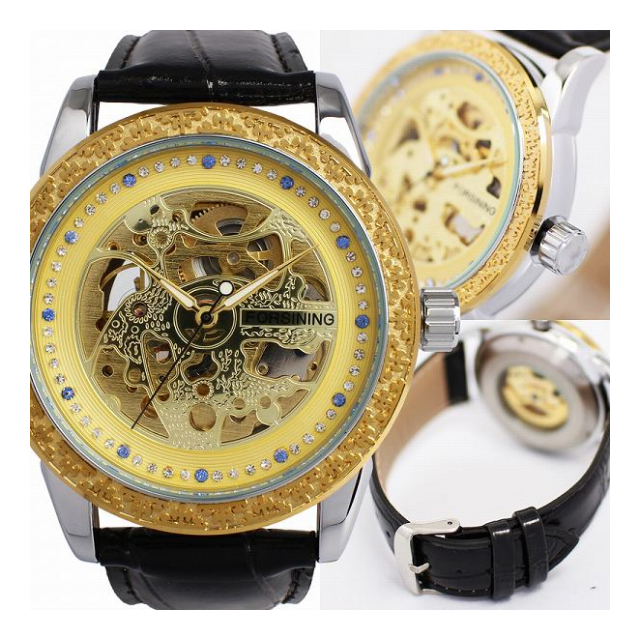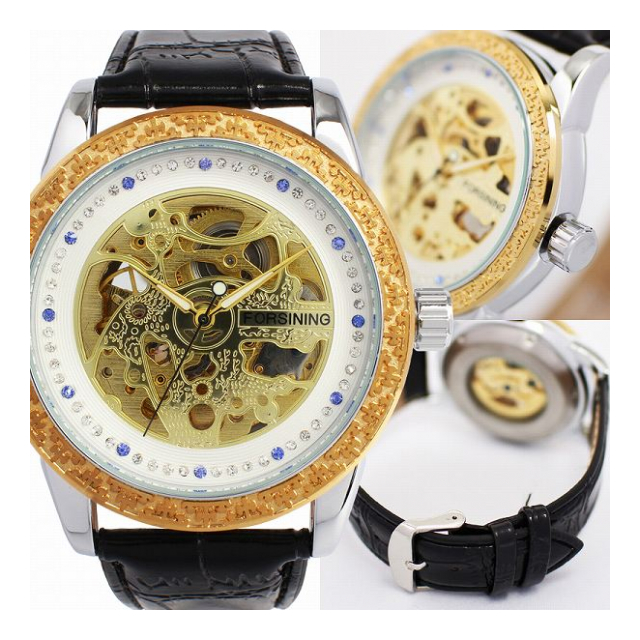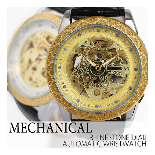 自動巻き腕時計 ATW031 ラグジュアリー ラインストーン ハーフスケルトン 機械式腕時計 メンズ腕時計