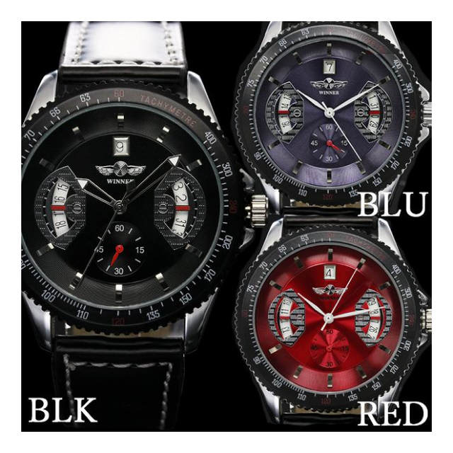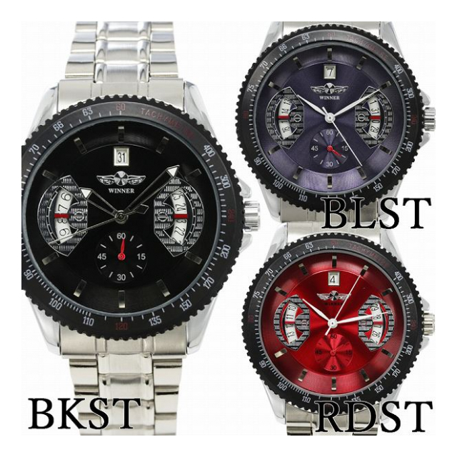 自動巻き腕時計 ATW007 日付カレンダー カラフルフェイス ギョーシェ彫り 機械式腕時計 メンズ腕時計