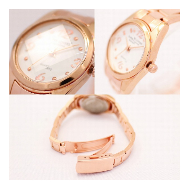 | ■素材→ステンレススティール、合金、有機ガラス ■付属品→保証書(ご購入日より3ヶ月) ■規格→クォーツ(電池式) |