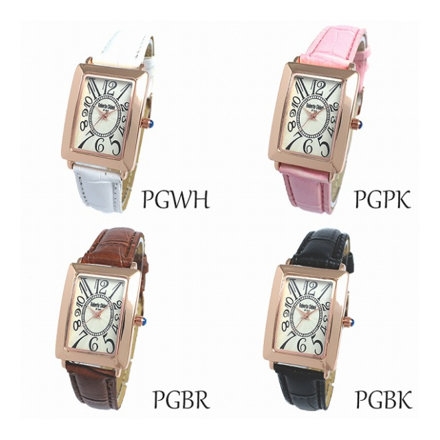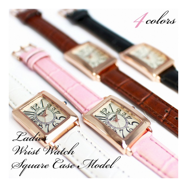 定番人気のスクエアケースを採用した、レディースモデルの腕時計です。