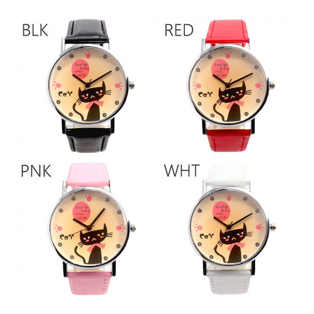 黒猫デザインのカジュアルデザインウォッチ キュートな肉球インデックス 全4色 SPST020 レディース腕時計