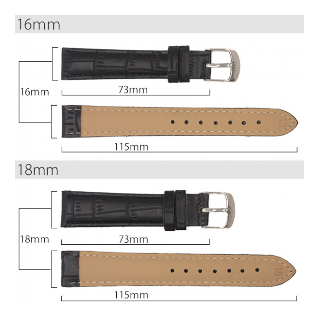 | ■サイズ(mm)→取り付け幅:16mm/18mm ※数値はおおよそとなり、前後します。 |