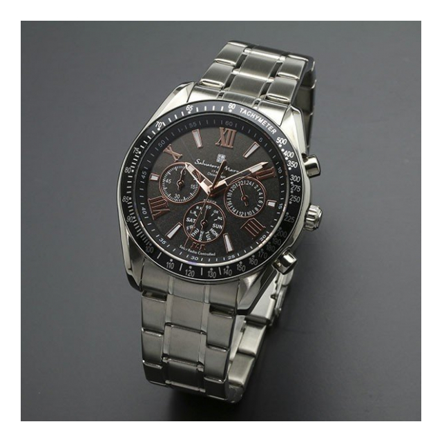 | ■素材→ステンレススチール、ミネラルクリスタルガラス ■付属品→純正保存箱、保証書(ご購入日より1年間)、取扱説明書 ■規格→日本製クォーツ(電池式)、電波ソーラー機能、60分積算計、24時間計、曜日表示、5気圧防水 ■ブランド名→Salvatore Marra |