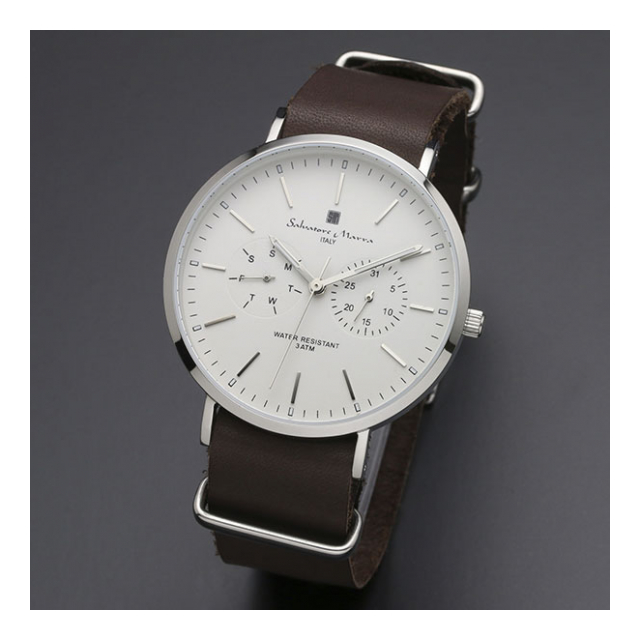 正規品Salvatore Marra腕時計サルバトーレマーラ SM15117-SSWHSV 多軸 薄型革ベルト メンズ腕時計