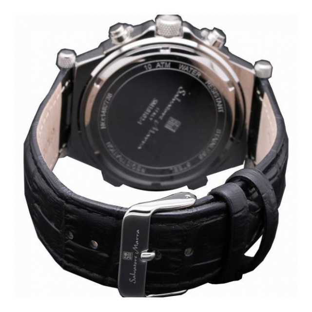 | ■素材→レザー、ステンレススチール、ミネラルクリスタルガラス ■付属品→純正保存箱、保証書(ご購入日より1年間)、取扱説明書 ■規格→日本製クォーツ(電池式)、クロノグラフ(1/1秒計、1/10秒計、60分積算計)、日付表示、10気圧防水 ■ブランド名→Salvatore Marra |