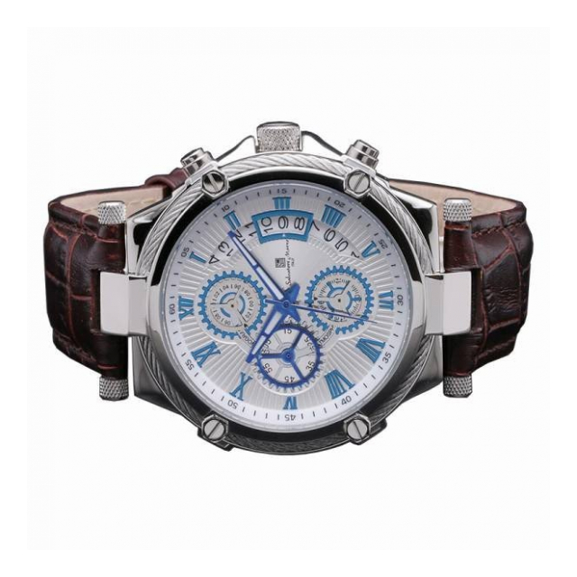 正規品SalvatoreMarra腕時計サルバトーレマーラ SM18102-SSWH クロノグラフ 革ベルト メンズ腕時計
