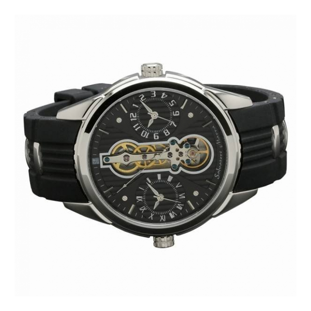 正規品SalvatoreMarra腕時計サルバトーレマーラ SM18113-SSBK ツインテンプ ラバーベルト メンズ腕時計