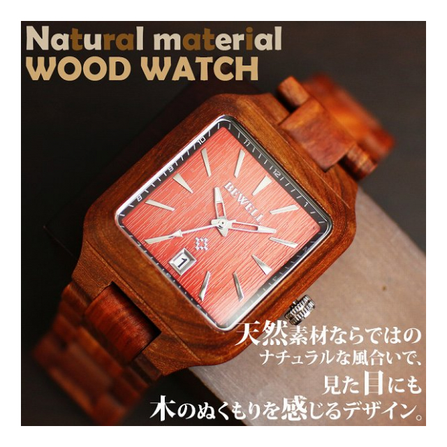 天然素材 木製腕時計 日付機能 40mm スクエア WDW010-02 メンズ腕時計