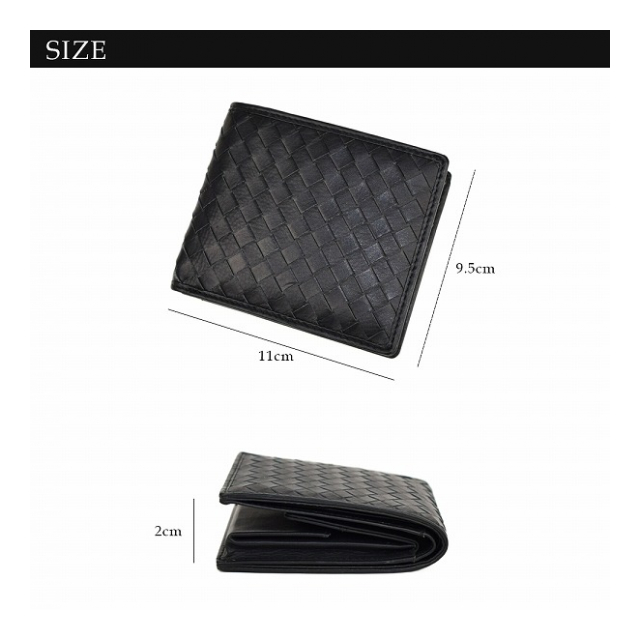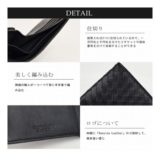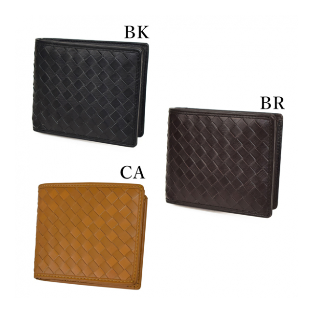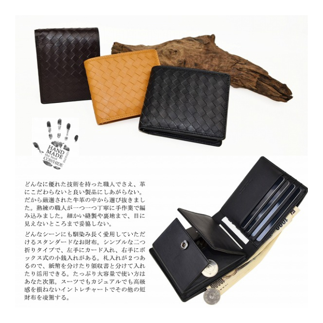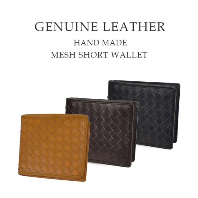 牛革 レザー ハンドメイド 編み込み 二つ折り財布 短財布 HM-09 メンズ財布