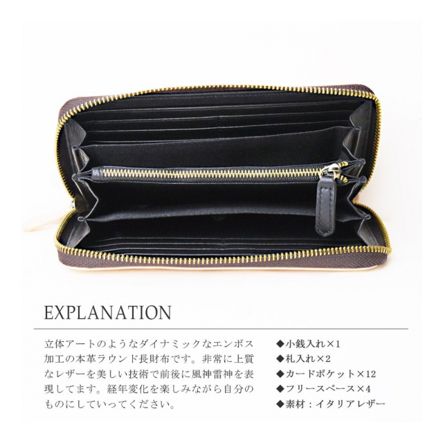 牛革 ヌメ革 イタリアンレザー 風神雷神 長財布 メンズ財布 レディース財布 HU-001 ユニセックス財布