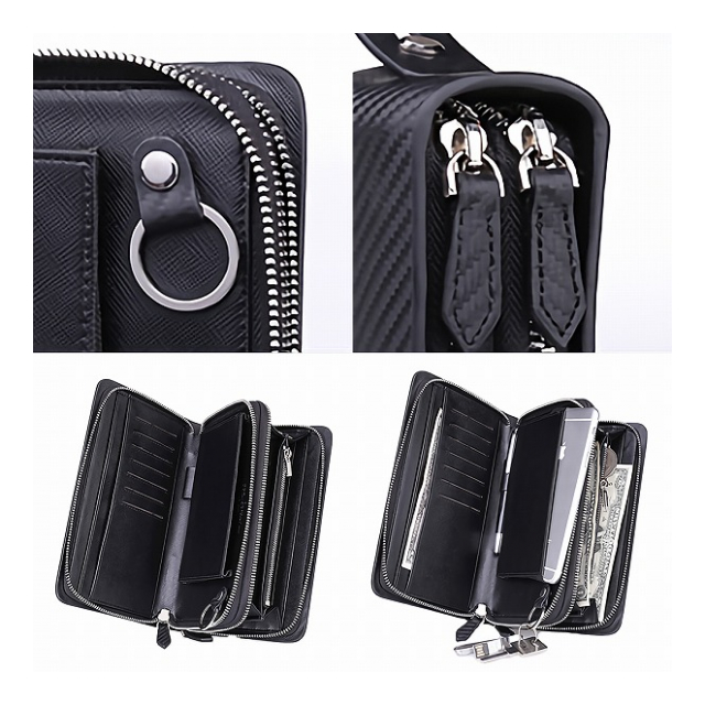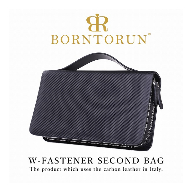 イタリア製 カーボンレザー セカンドバッグ Wファスナー BTR-IC-002 メンズバッグ