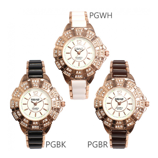 ラインストーン装飾ベゼルにセラミック風コンビベルト ピンクゴールド シルバー レディース腕時計 AV022