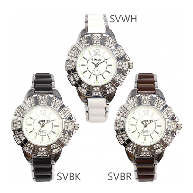 | ■素材→ステンレススティール、合金、有機ガラス(アクリル)、ラインストーン ■付属品→保証書(ご購入日より3ヶ月) ※収納用の保存箱は付属しませんので必要な場合は商品ページから別途お買い求め下さい。 ■規格→クォーツ(電池式) |