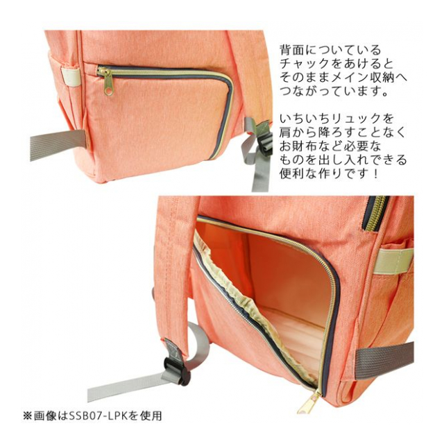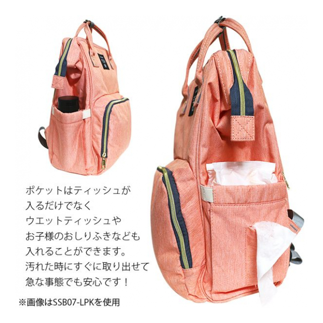 大きめのマザーズリュックサックです。大容量で荷物をまとめるのに役立つこと間違いなしです!ポケットなど収納スペースがいくつもついている多機能で、かばんの中を整理しやすい作りをしています。