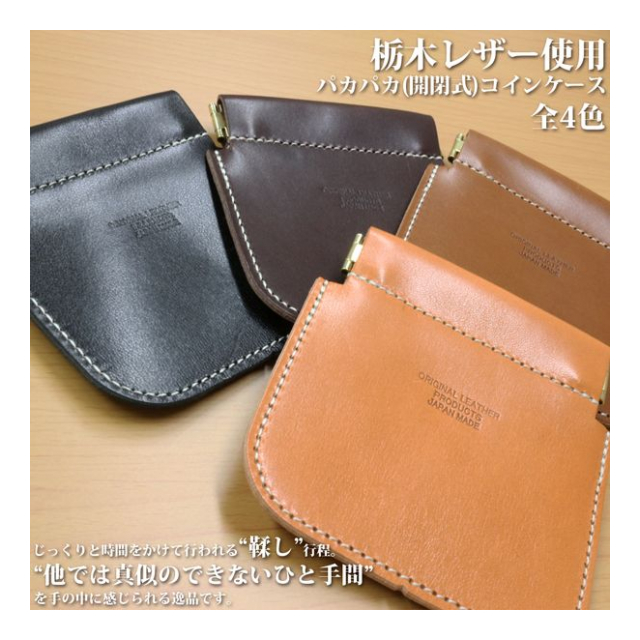 日本製本革 栃木レザー[サマーオイル]パカパカ開閉式コインケース 小銭入れ 片手でワンタッチ開閉 L-20495