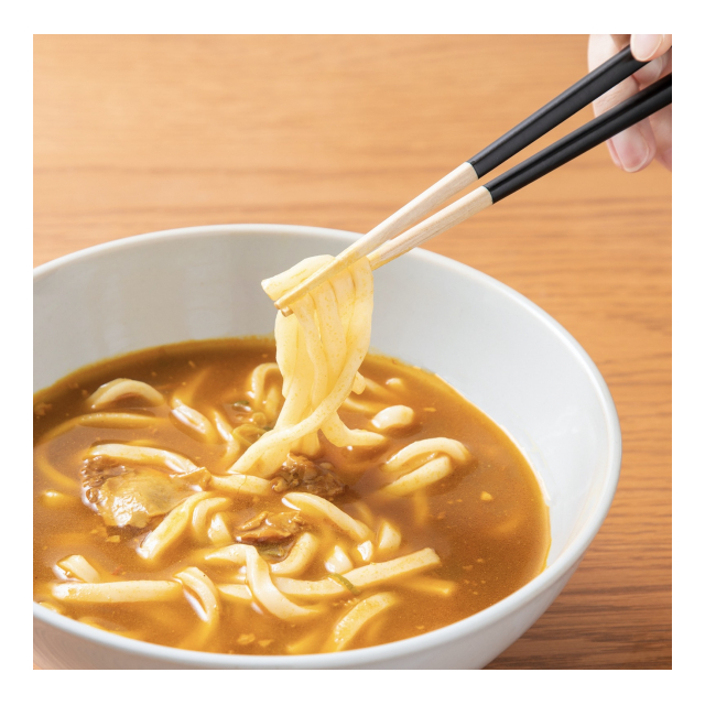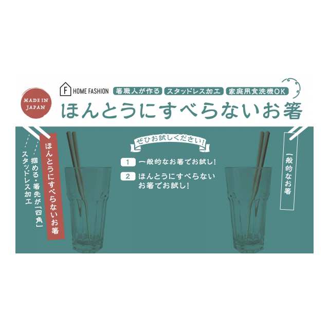 スタッドレス加工によって、ツルっとした麺類やこんにゃくも簡単につかめる「ほんとうにすべらないお箸」